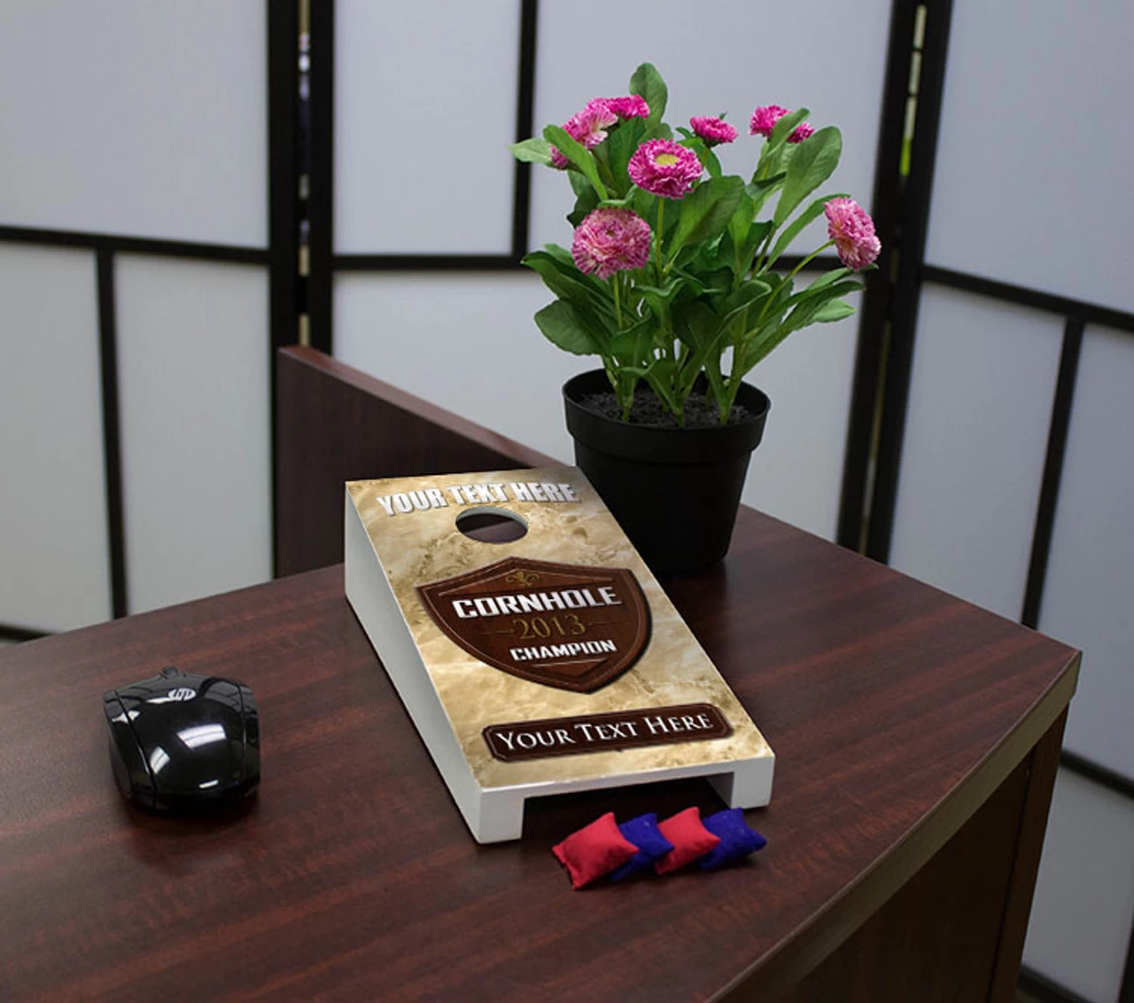 Need some unique cornhole trophies for your cornhole league, tournament, or just as a prize? We can also make custom designs for you so just let us know what you’re looking for. Each trophy is 5″ x 10″ and looks great on a table or desk. Each trophy also comes with 4 mini bags so you can actually play cornhole with them!