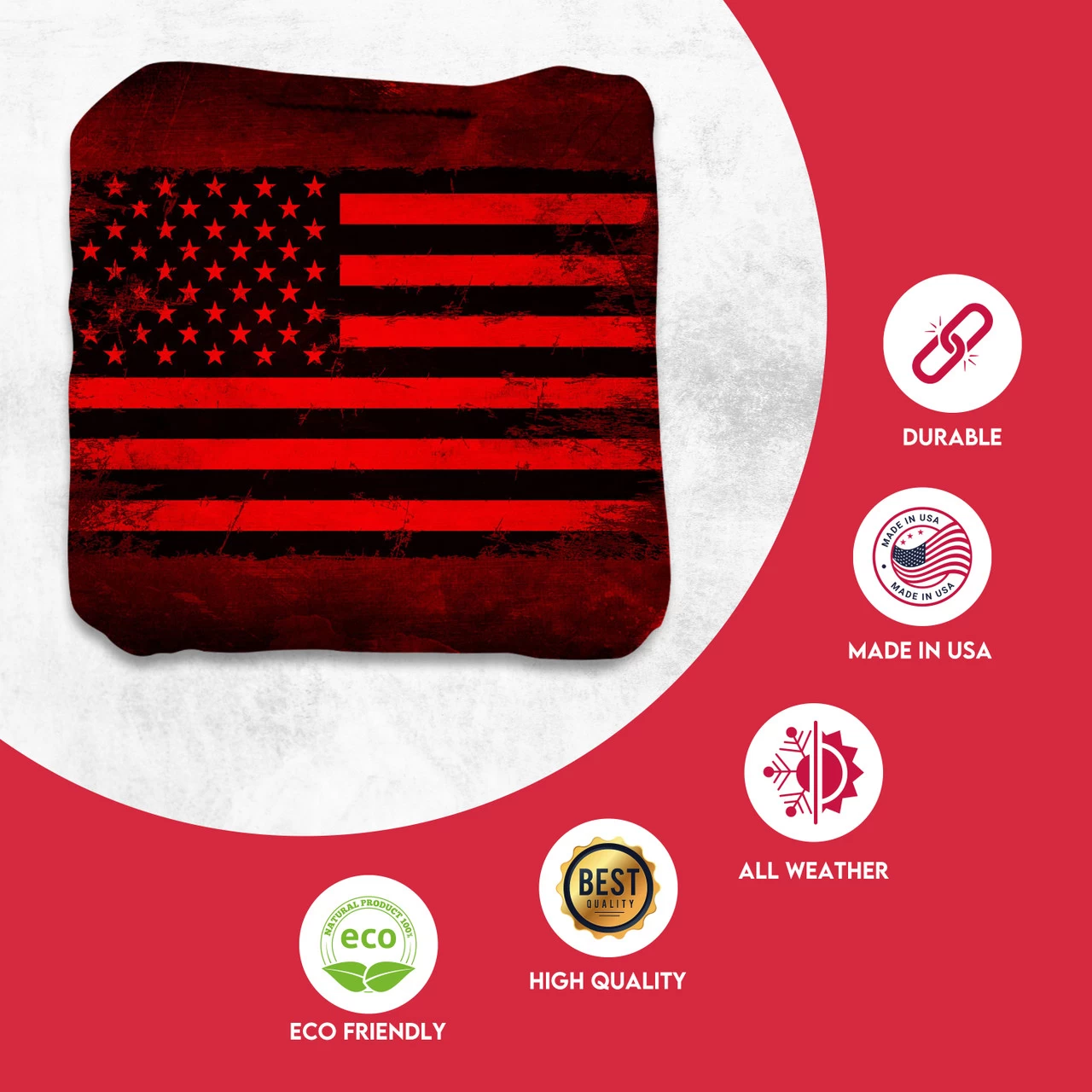 Professional Regulation Cornhole Bags’ dual-sided material construction advances playing strategy and control, allowing you to grab or glide on the board. With various graphic options available, sets can be mixed and matched to fit any style.
