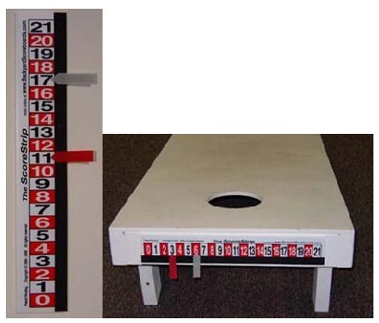 The Deluxe ScoreStrip is a simple and effective way to keep track of scoring for Cornhole games. It easily attaches to any convenient surface, and allows the players to quickly keep track of both team’s score. Simply move the color-coded Velcro ScoreMarkers to indicate the scores. The ScoreStrip is printed with horizontal numbers on one side, and a vertical layout on the other, making it easy to read in either mounting position. Made from all-weather materials, so it can be permanently mounted outdoors. Patented. The Deluxe ScoreStrip set includes one ScoreStrip and a set of 5 assorted color ScoreMarkers. Quick and easy stick-on installation, or use the screws provided. Also includes one storage strip to stow your ScoreMarkers when not in use.