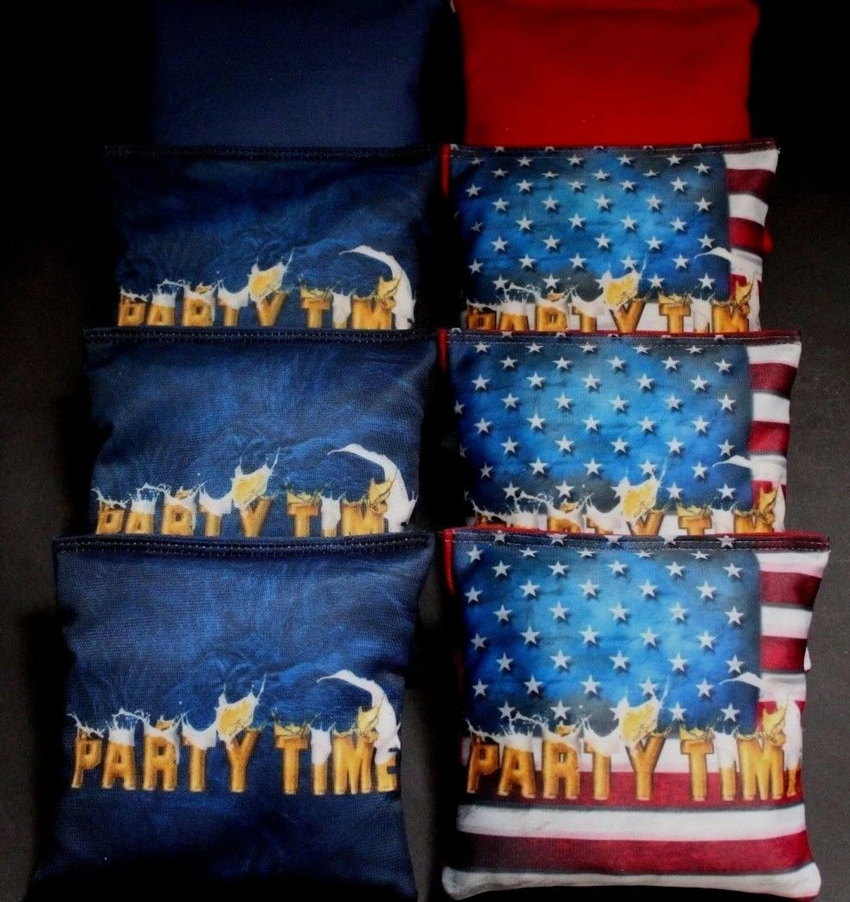 Handmade quality craftsmanship. Bags are double stitched with heavy duty thread and each side is made of premium durable duck canvas for durability and extra strength. Each bag measures approximately 6″x6″ Bags are filled with regulation 16oz. whole corn. Or, you may upgrade to all-weather resin filled bags, which are washable and waterproof.