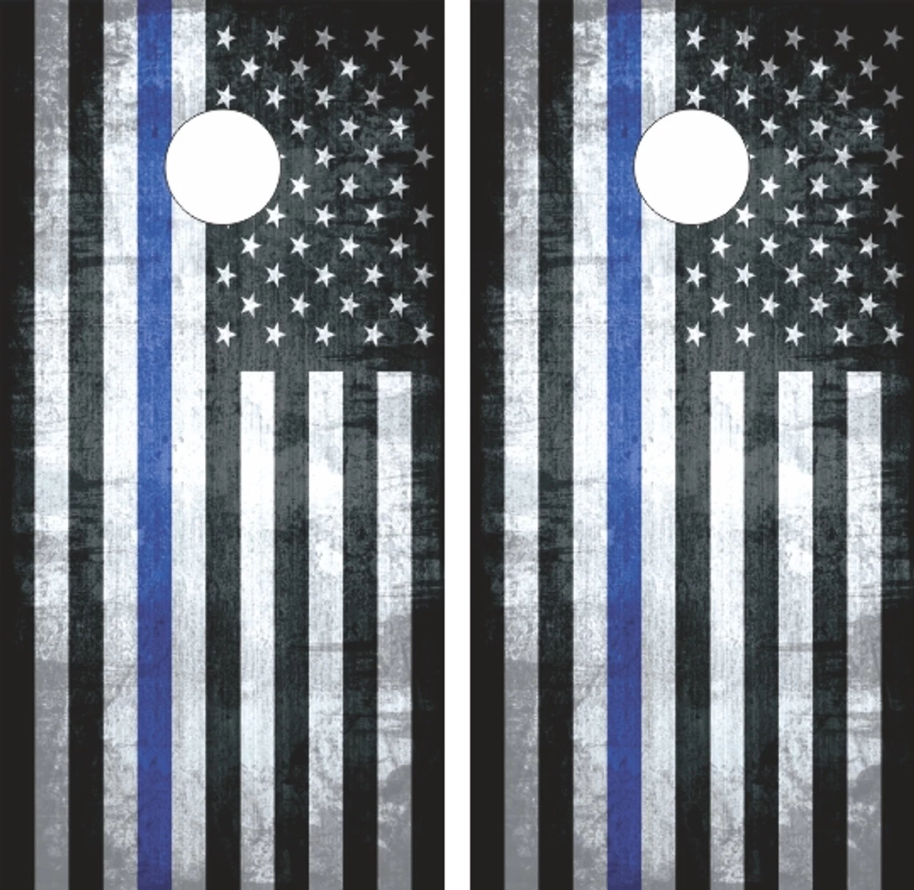 Thin Blue Line Flag Cornhole Wraps – Set Of 2